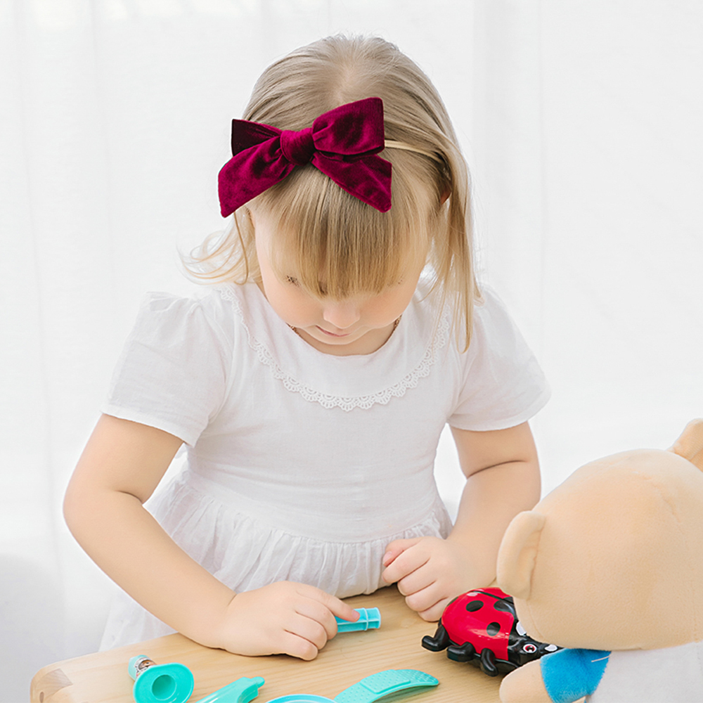 Bentita cu fundita potrivita atat pentru viata de zi cu zi, cat si pentru ocazii speciale, creata pentru fetitele de la 0 la 7 ani si realizata manual dintr-o fundita de catifea si elastic pentru fixare perfecta. Dimensiuni : 11,6 cm (lungime) x 9,7 cm (inaltime)