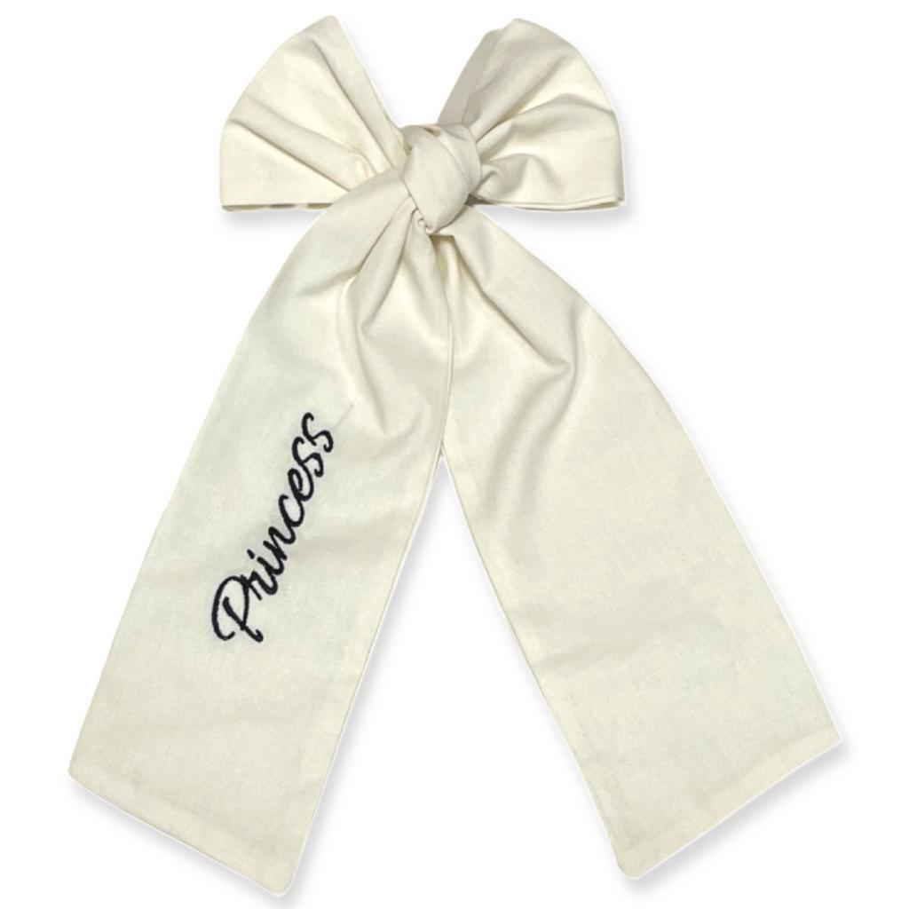 O frumoasa fundita crem pentru par din bumbac cu broderie "Princess" (traducere "Printesa") pe lateral si inchidere cu clips.