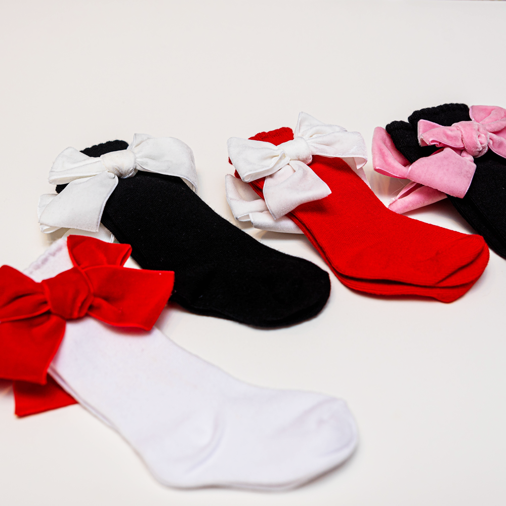 Sosetele confectionate manual, cu fundita decorativa din catifea eleganta.