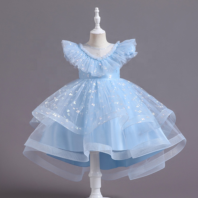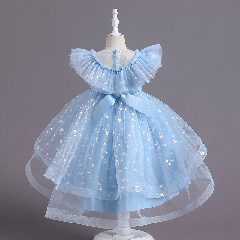 O superba rochița pentru fetițe cu trena realizată cu căptușeală de bumbac accesorizata cu perlute si volanase.