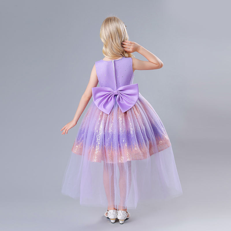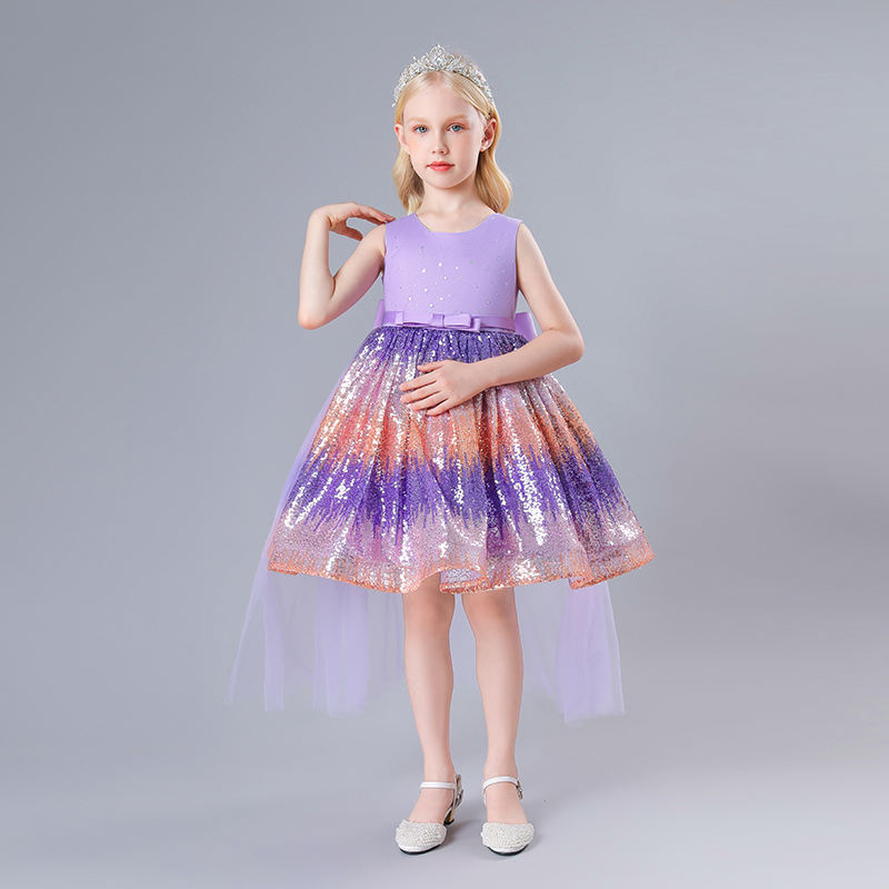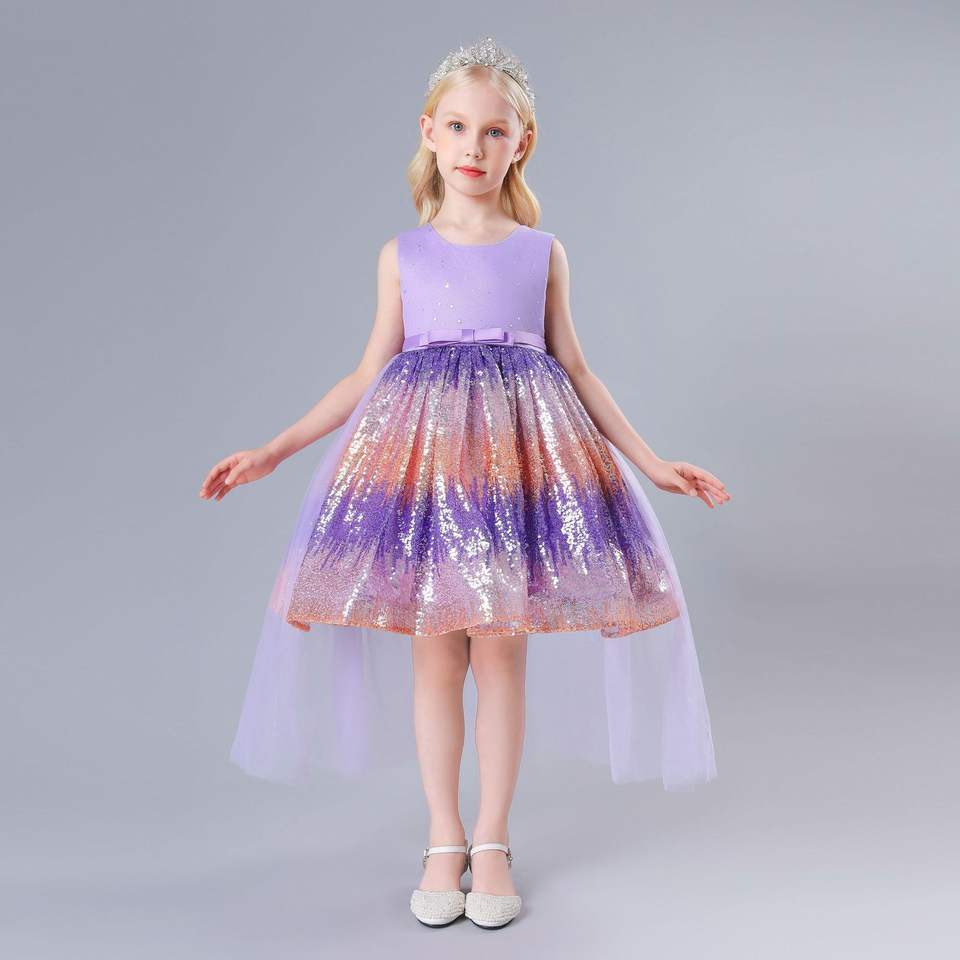 Rochița eleganta pentru fete culoarea mov în partea superioara și în combinație de 2 culori în partea inferioara.