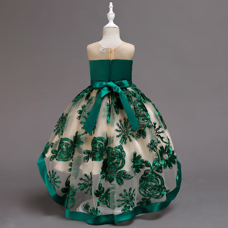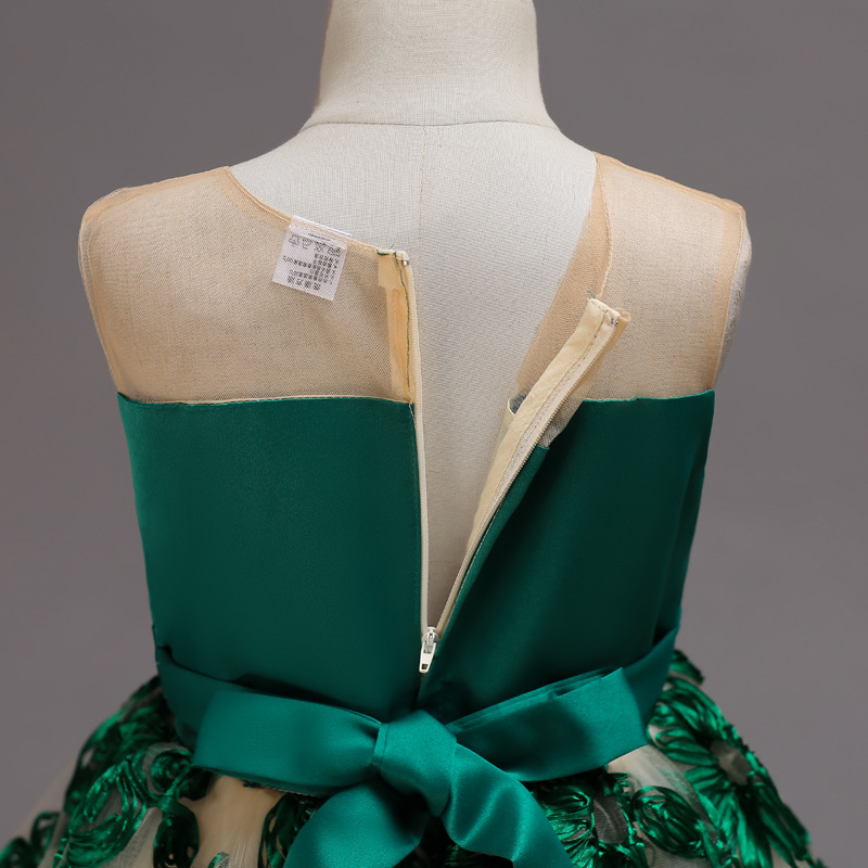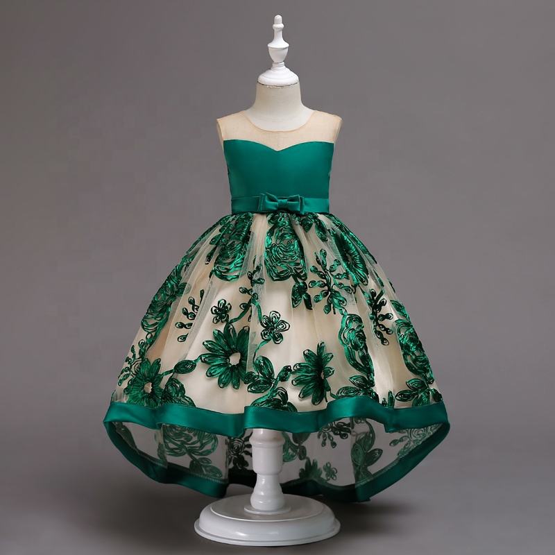 Rochița eleganta fete cu model scurt în fata și lung în spate având model cu flori în relief și material ușor lucios în partea superioara.