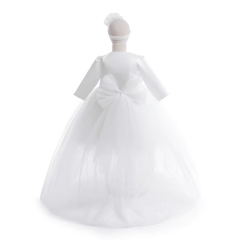 Rochita de ocazii pentru fete contine urmatoarele: rochita cu trena nedetasabila, bolero cu maneca lunga, fundita detasabila la spate ce se prinde cu capse si fundita de pe cap.