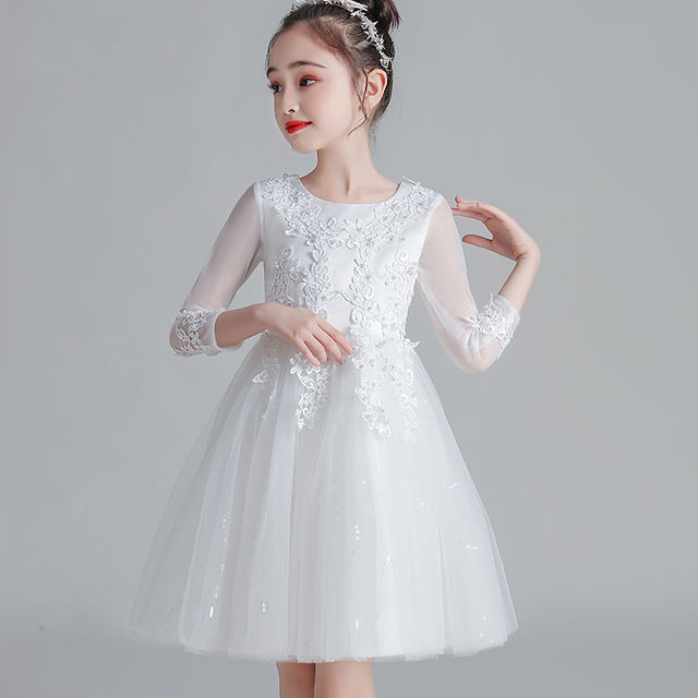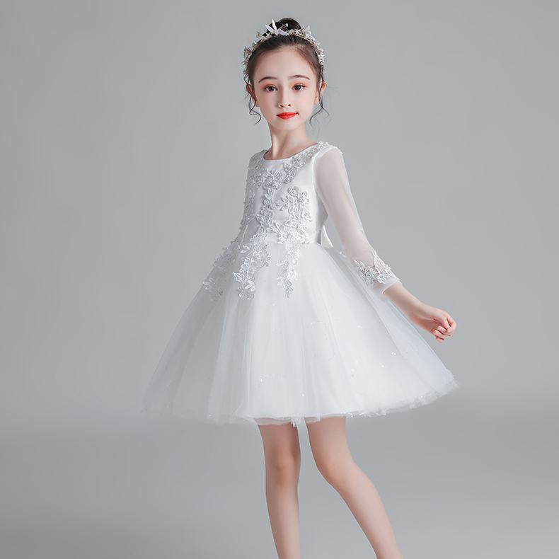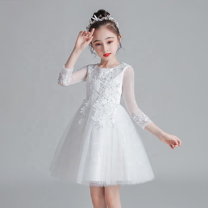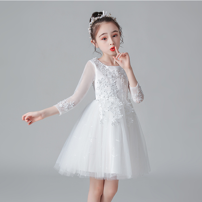 O superba rochita alba cu maneci lungi ideala pentru sezonul toamna-iarna. Aceasta are manecile lungi, aplicatii de dantela delicata, inchidere cu fermor si cordon la spate.