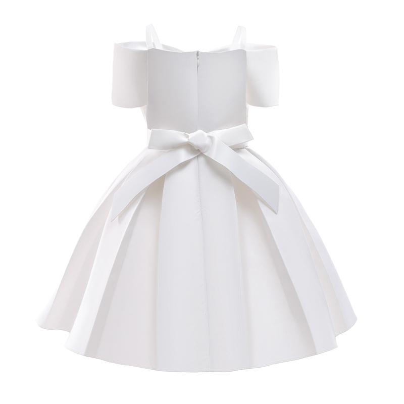 Rochita eleganta pentru fete ideala pentru petrecerile de vara, accesorizata cu fundita mare ampla in partea din fata si design cu umeri goi.