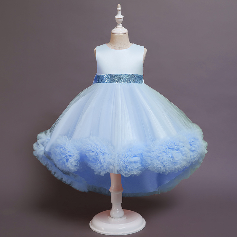 O superba rochita cu trena pentru fetite cu brau de baiete si fundita la spate detasabila.